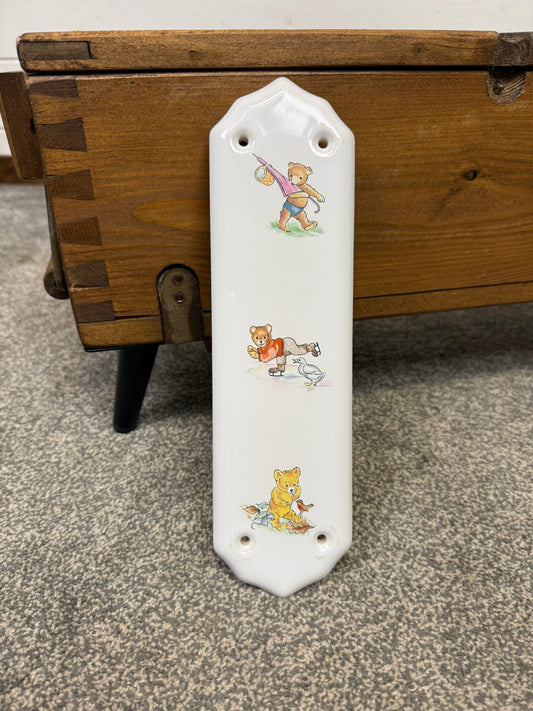 Porcelain Finger Plate Door Push Plate Teddy Bear Design 11" x 3" Cottage Bedroom