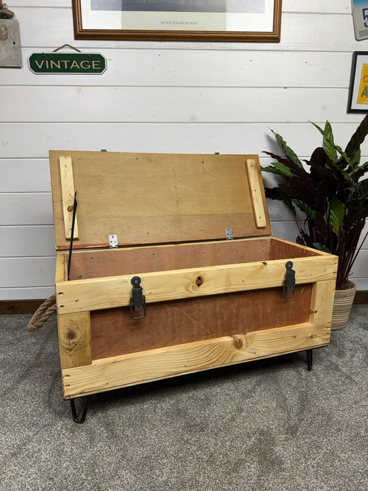 Large Wooden Chest Box Ex Military Army Upcycle Blanket Box Storage Trunk