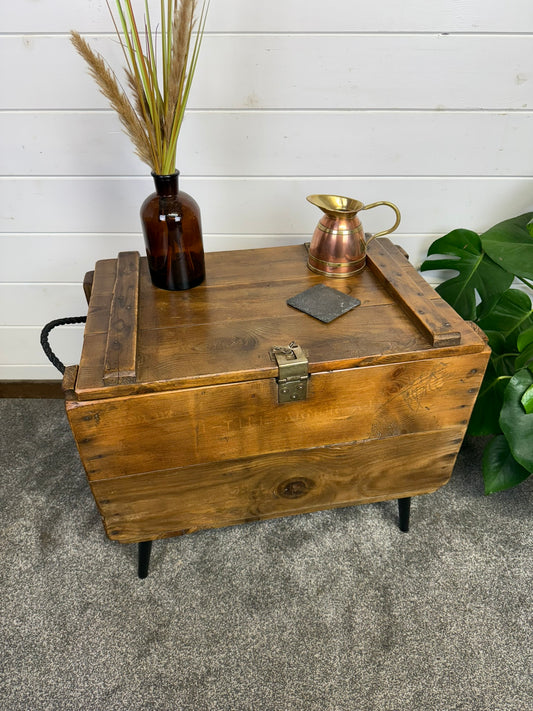 Vintage Rustic Wooden Box Side Table Storage Reclaimed Chest Cottage Farmhouse Coffee Table