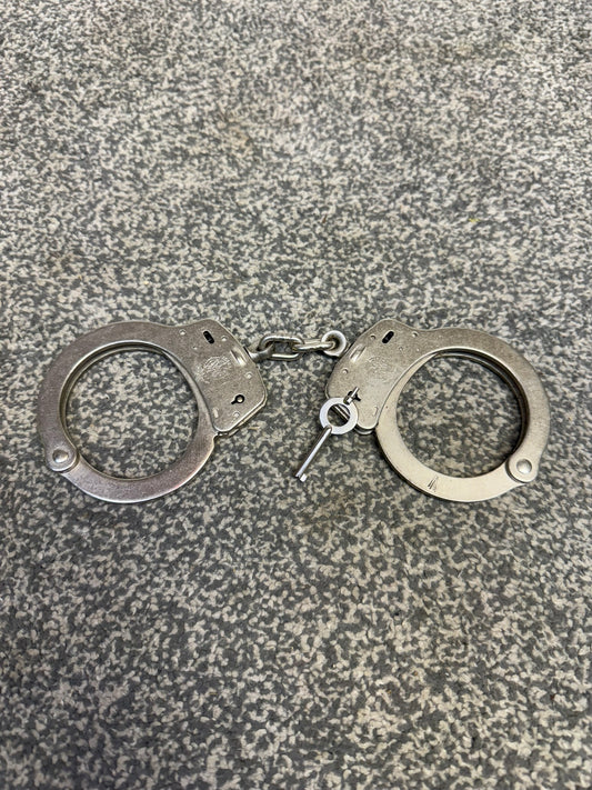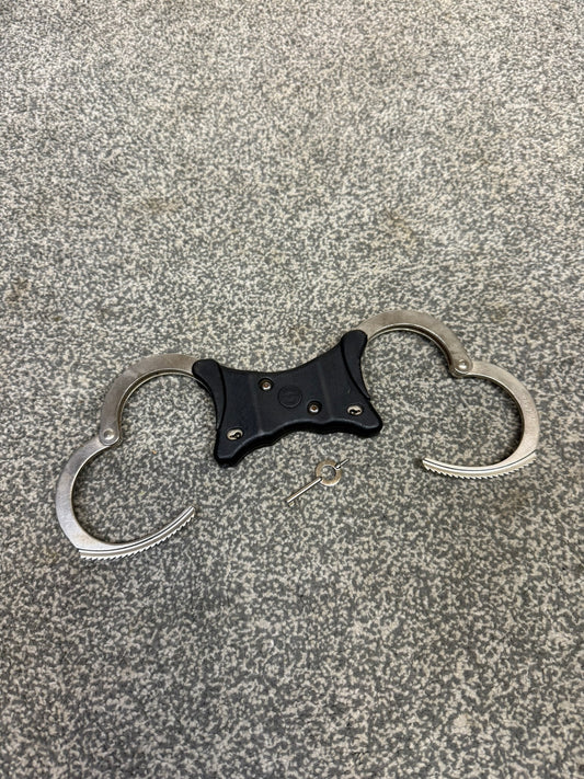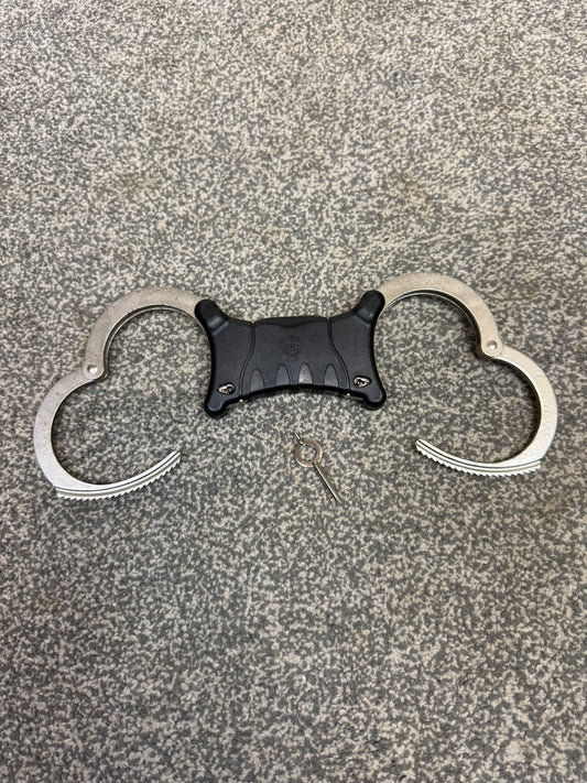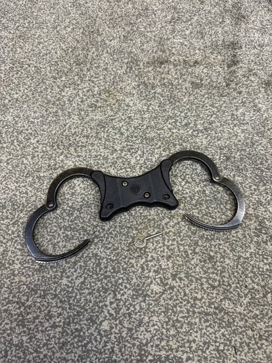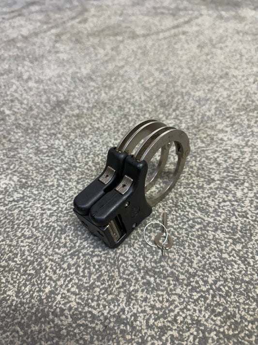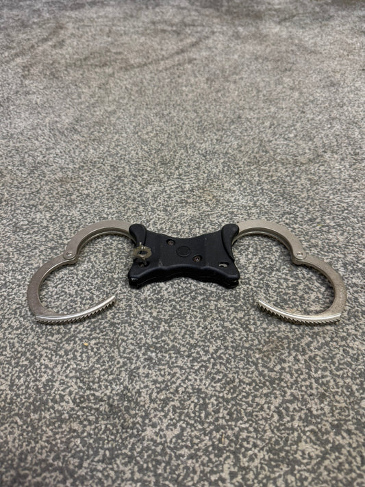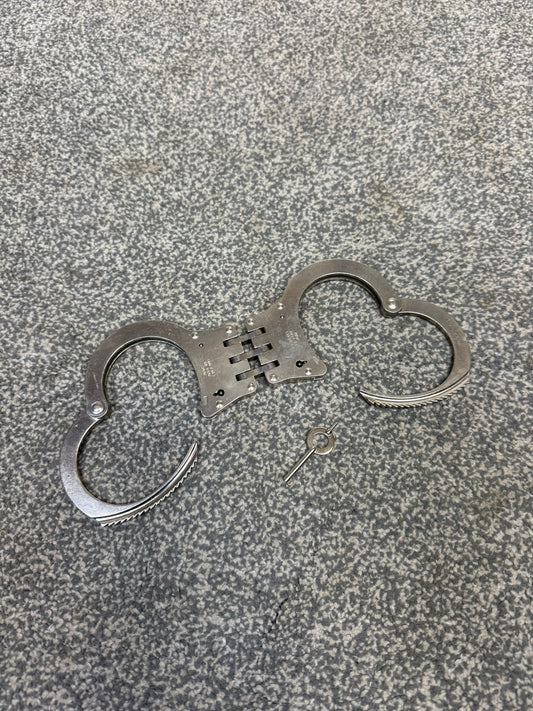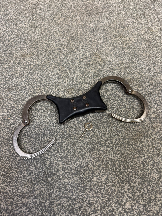 Ex Police Folding Hiatt Handcuffs Hinged Cuffs & Key Security Collectible