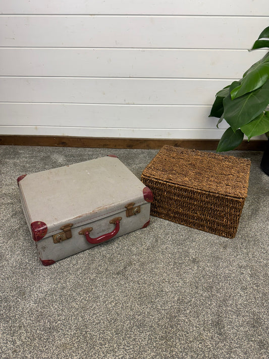 Vintage Suitcase & Wicker Basket Job Lot Boho Retro Industrial Decor Photo Prop Display