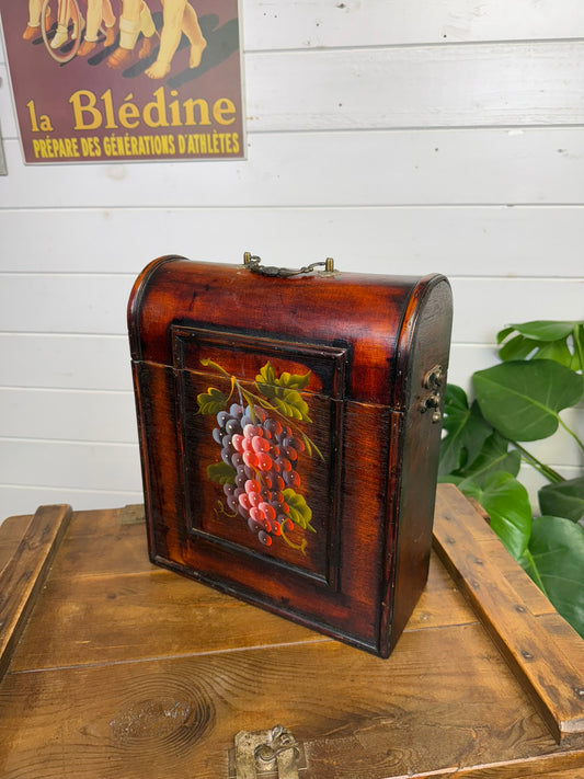 Vintage Wooden Wine Box Chest Triple Bottle Hinged Hand Painted Decorative Display