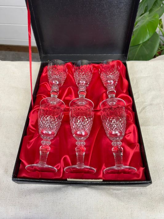 6x Vintage Nazeing Lead Crystal Hand Made Port / Sherry Glasses