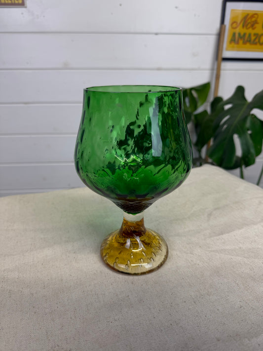 Vintage Green Glass Vase 1960's Glass Goblet Mid Century Art Deco Empoli Style