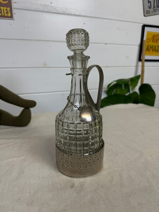 Vintage Cut Glass Whiskey Decanter With Silver Plate Caddy
