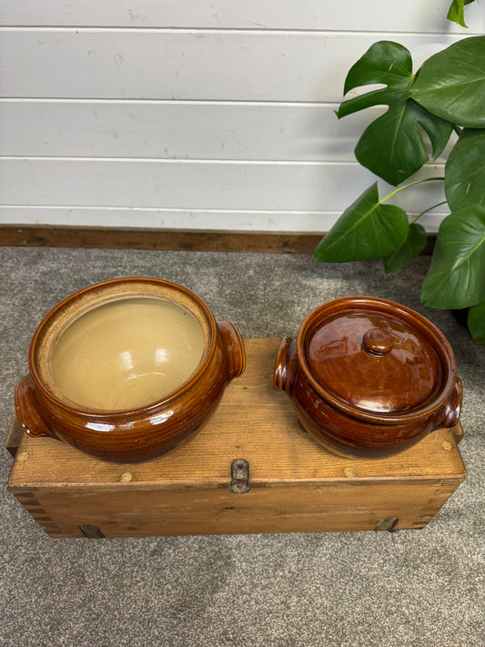 2x Vintage Pearsons Chesterfield Stoneware Casserole Dish Crockpot Oven Cookware