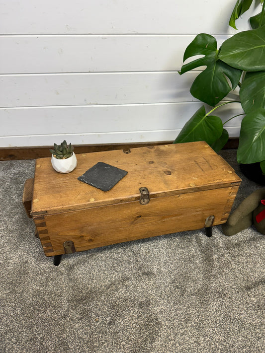 Vintage Rustic Wooden Chest Trunk Blanket Box Vintage Farmhouse Coffee Table Ottoman Ammo Box Side Table.