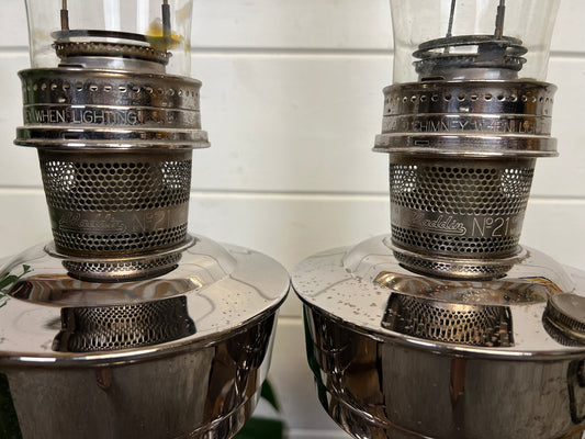 2x Vintage Aladdin Oil Lamps With Glass PAIR Retro Home Decor Display