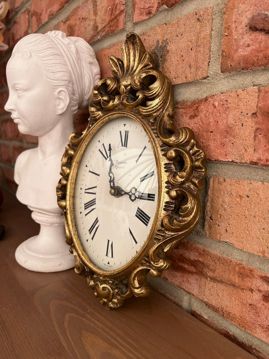 Vintage Baroque French Gilt Vedette Quartz Wall Clock Art Nouveau Boho Decor