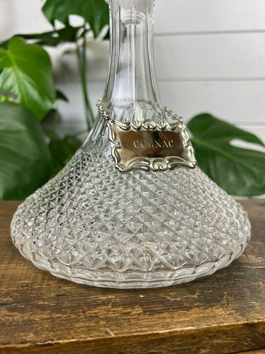 Vintage Cut Glass Ships Decanter With Cognac Silver Plated Chain