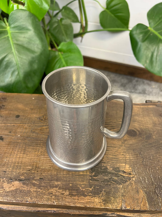 Vintage Hand Beaten Sheffield England Pewter Tankard 1940s 50's Pub Bar Decor