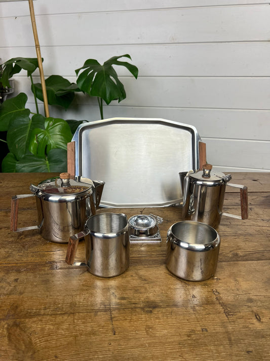 Vintage Mid Century 6 Piece Stainless Steel Tea Service Coffee Service
