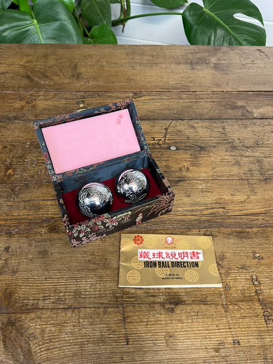 Vintage Shou Xing Chinese Iron Balls In Case Baoding Balls With Chime