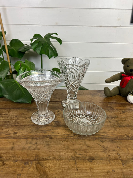 Vintage Cut Glass Vase & Bowl Job Lot Art Deco Bohemian Decor