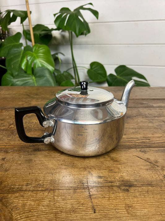 Vintage Stainless Steel Tea Pot Bakelite Handle 1970's 80's Mid Century Art Deco Retro Kitchen