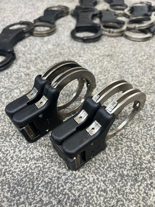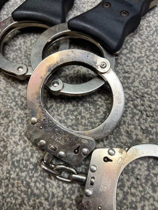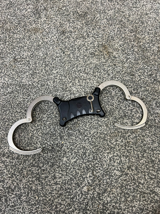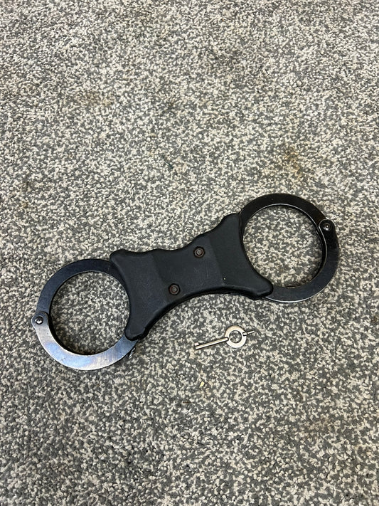 Ex Police Genuine Hiatt Folding Hinged Handcuffs & Key Security Collectible Memorabilia Restraint
