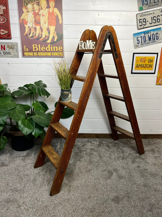 Vintage Wooden Step Ladder Double Sided Waxed Rustic Library Farm Decor Display