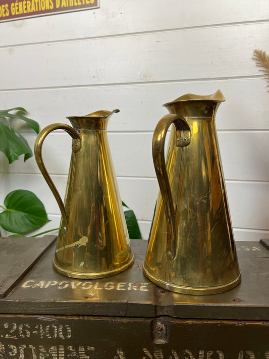 2x Vintage Brass Jug Pitcher Vase Joseph Sankey J.S & S Boho Art Nouveau Antique Deco