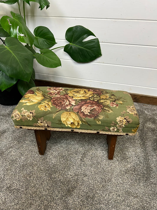 Vintage 50's Floral Upholstered Foot Stool Mid Century Retro Boho Style Decor