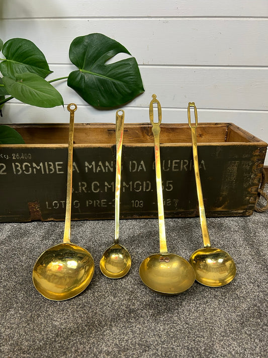 4x Vintage Brass Ladles Decorative Cottage Wall Art Nouveau Deco