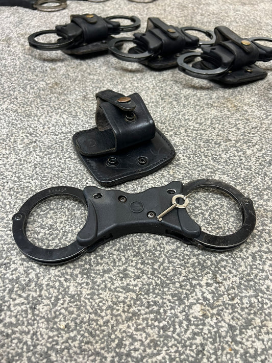 Ex Police Black Hiatt Handcuffs Genuine Cuffs With Key & Pouch Security Collectible Memorabilia Restraint