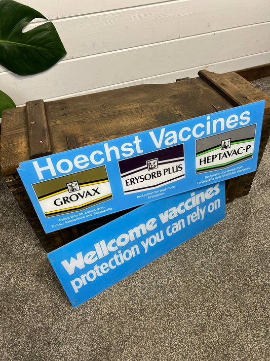 2x Vintage Hoechst Vaccine Signs Doctors Surgery Advertising Signs
