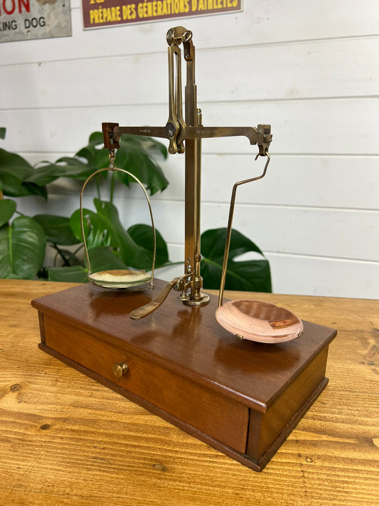 Vintage Jewellers Travel Scales Brass on Mahogany Box Apothecary Display