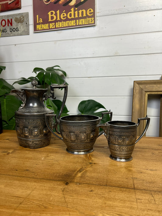 Vintage Silver Plate Jug Pewter & Coffee Pot Decorative Gothic Tableware Decor