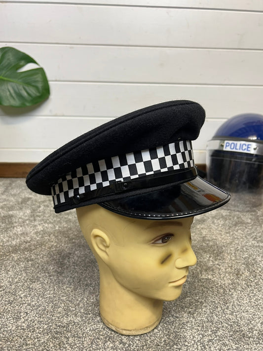 Ex Police Black Peak Cap 58cm Genuine Issue Chauffeur Fancy Dress Film Prop Collectible
