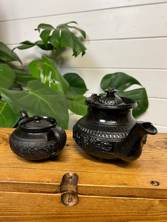 2x Vintage Black Basalt China Teapot 19th Century Gothic Alt Home Decor