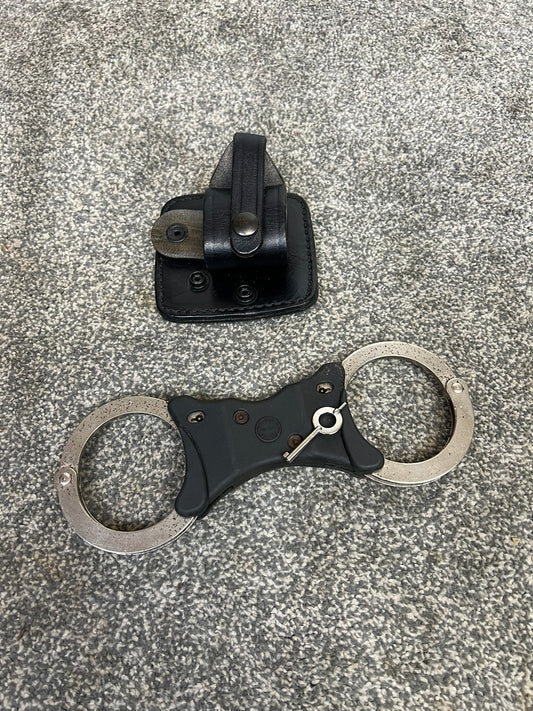 Police Hiatt Handcuffs With Key & Belt Pouch Security Collectibles Memorabilia