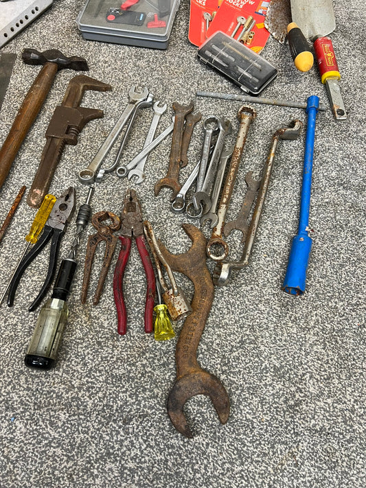 Job Lot of Old Garage Tools Vintage Rustic Spanners Hand Drill Screwdrivers etc.