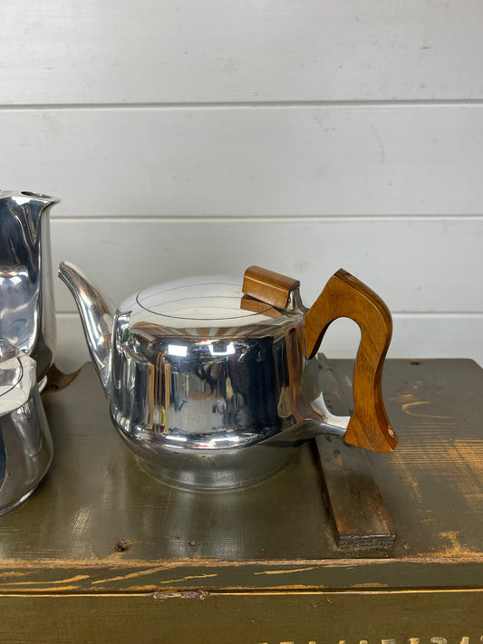 Vintage Picquot Ware Mid Century 4 Piece Stainless Steel Tea Service