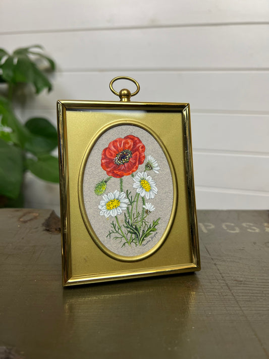 2x Vintage Paula Joyce Small Brass Oval Photo Frames Wild Flowers Design