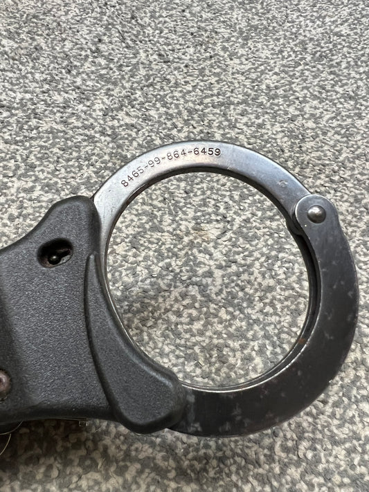 Rare Military Police Black Handcuffs Genuine Hiatt Cuffs With Key NSN Collectible Memorabilia