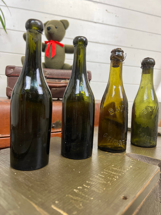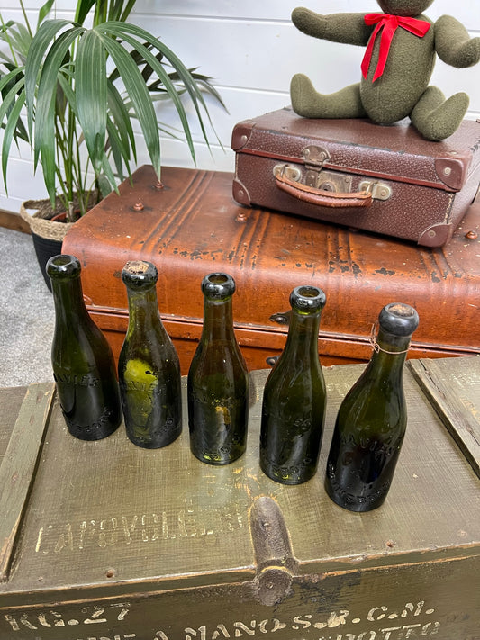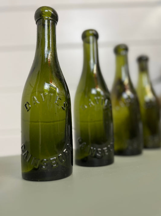 5x Vintage Green Glass Bottles "Davies Gainsboro" Decorative Codd Shelf Decor Wedding Decor Rustic Home Deco