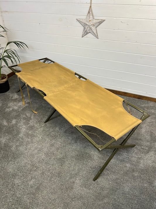 Vintage U.S Military Folding Canvas & Metal Cot Camp Bed Cable Cot 1924 Army