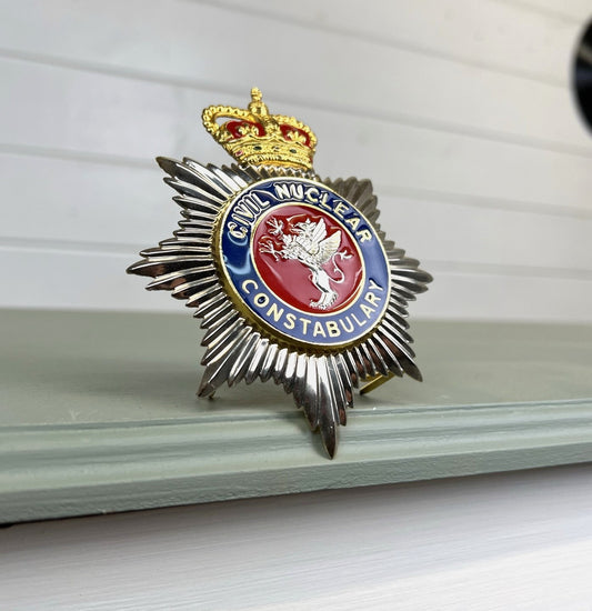 Civil Nuclear Constabulary Obsolete Enamel Bobby Helmet Badge Plate Queens Crown