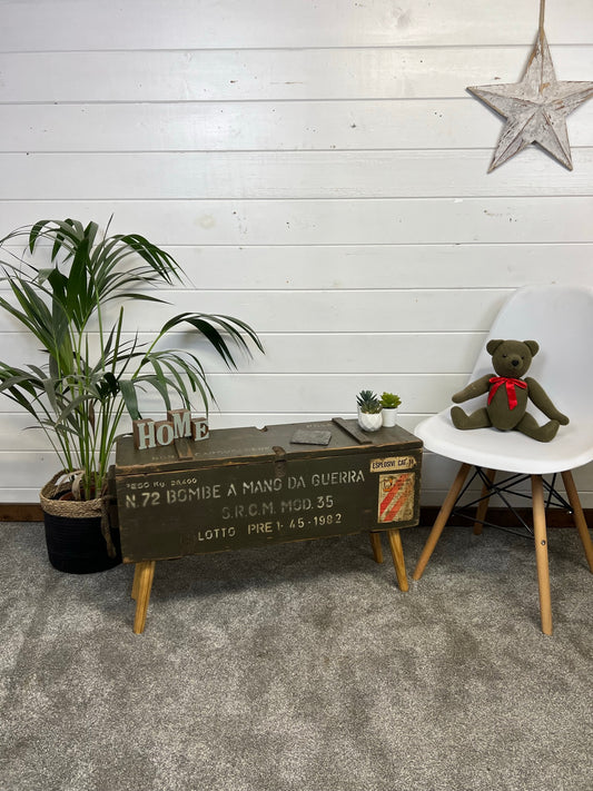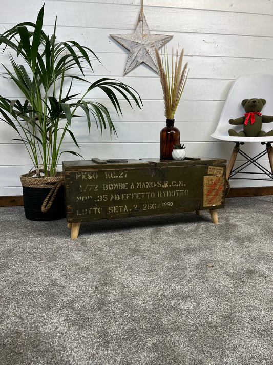 Vintage Wooden Ammo Box Side Table Rustic Storage Chest Industrial Trunk Home Coffee Table