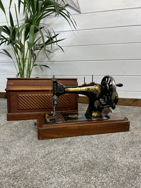 Vintage Singer Sewing Machine 28K Dates 1897 Hand Crank With Wooden Case & Accessories