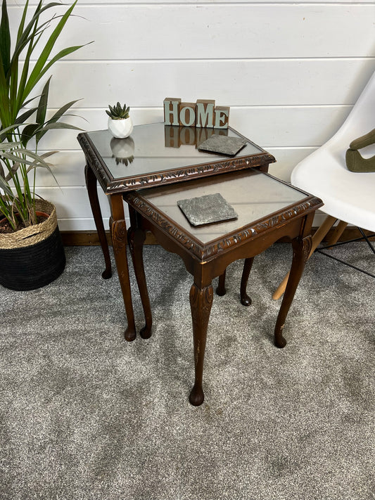 Vintage Glass Top Nesting Tables Coffee Table Home Side Table Nest Farmhouse Rustic Decor