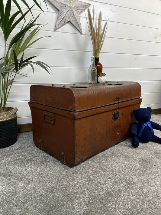 Vintage Metal Travel Chest Large Trunk Rustic Home Coffee Table Blanket Storage Box