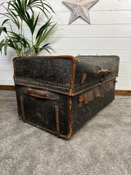 Vintage Antique 19th Century Canvas & Leather Steamer Trunk Large Travel Chest Blanket Box