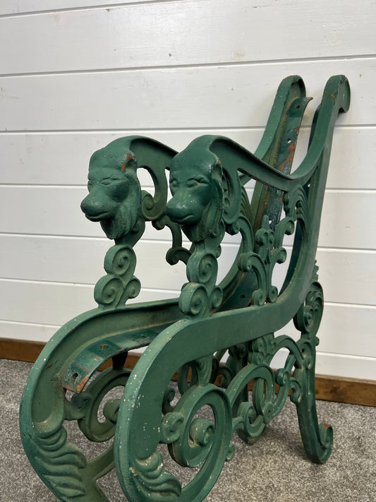 Vintage Decorative Cast Iron Lion Head Bench Ends Reclaimed Home Garden Architectural Salvage