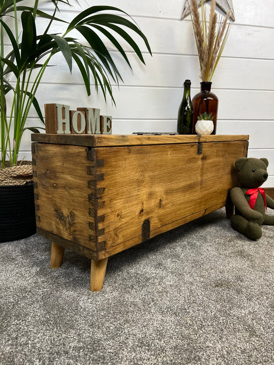 Vintage Wooden Storage Chest Side Table Coffee Table Industrial Trunk Rustic Farmhouse Home Decor