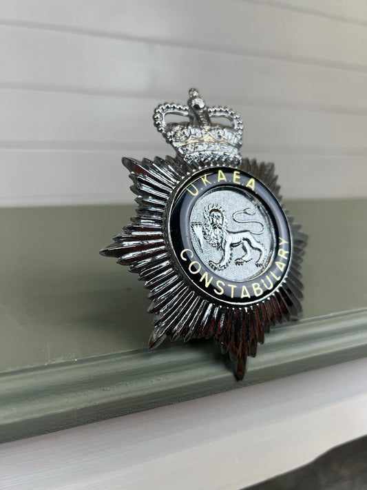 United Kingdom Atomic Energy (U.K.A.E.A.) Constabulary Enamel Queens Crown Bobby Helmet Badge Plate