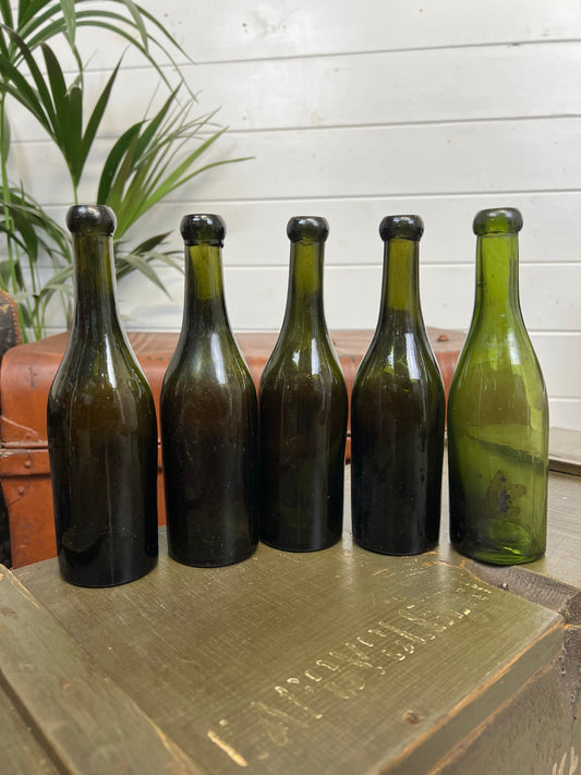 5x Vintage Glass Bottles Plain Green Decorative Codd Shelf Decor Wedding Decor Rustic Home Deco