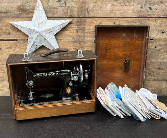 Vintage Singer Sewing Machine 1950 Hand Crank With Hard Case & Extras