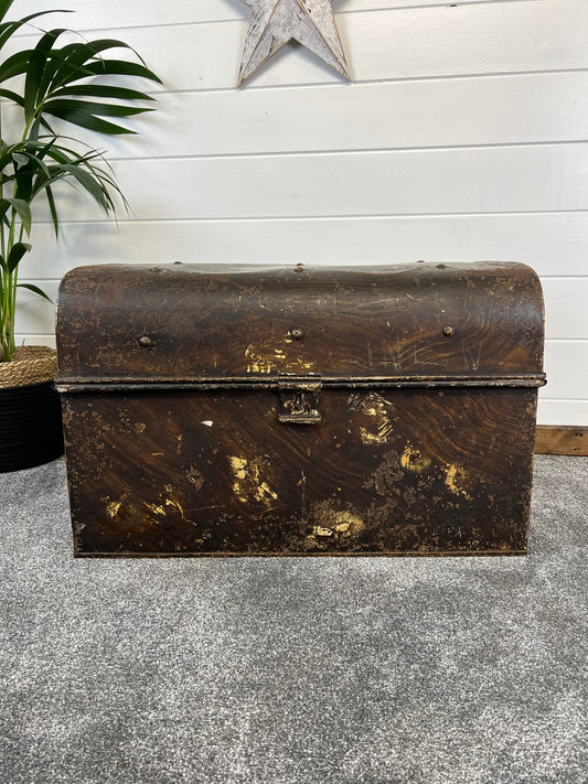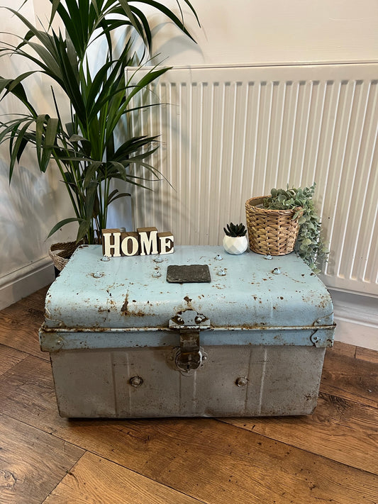 Large Vintage Metal Trunk Rustic Coffee Side Table Original Storage Steamer Chest