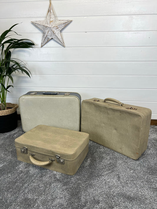 3x Vintage Suitcase Job Lot 1960's Retro Trunk Boho Décor Theatre Film Display Prop